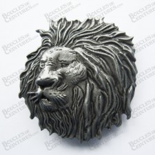 BOUCLE DE CEINTURE TÊTE DE LION SUR FOND ARGENT LUSTRÉ BOUCLE EN MÉTAL AVEC ÉMERILLON CLASSIQUE AU DOS DE LA BOUCLE.BOUCLE NUE A MONTER SUR UNE CEINTURE DE LARGEUR STANDARD DU TYPE JEANS.ADAPTABLE SUR TOUT MODÈLE DE CEINTURE DE 4>5 CM DE LARGE
