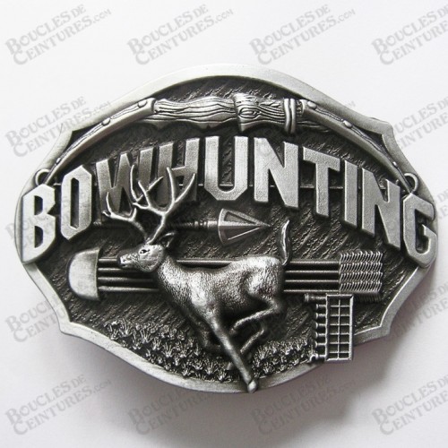 BOUCLE DE CEINTURE BOWHUNTING CHASSE AU CERF AVEC FOND COULEUR ARGENT