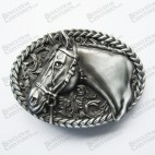 BOUCLE DE CEINTURE TÊTE DE CHEVAL SUR FOND ARGENT BROSSÉ