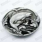 BOUCLE DE CEINTURE POISSON SAUVAGE PECHE SUR FOND ARGENT
