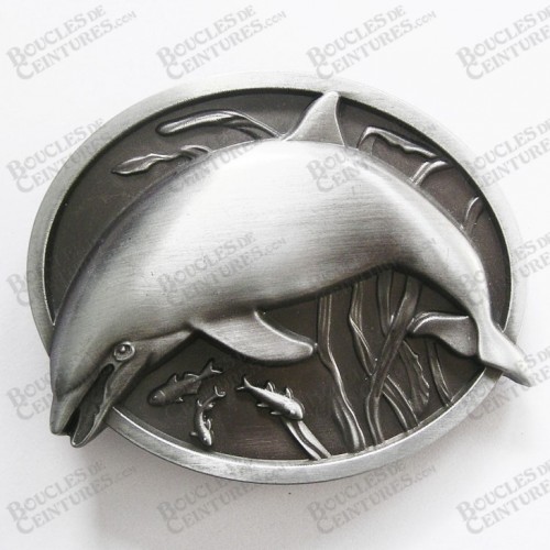 BOUCLE DE CEINTURE DAUPHIN SUR FOND DE COULEUR ARGENT