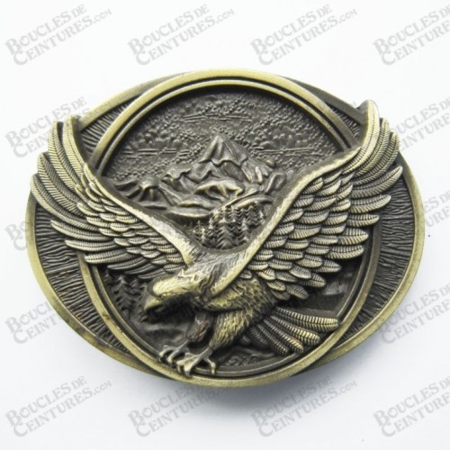 BOUCLE DE CEINTURE AIGLE DES MONTAGNES SUR FOND BRONZE
