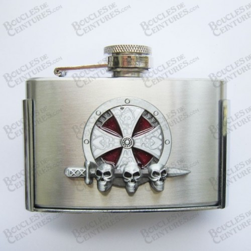 BOUCLE DE CEINTURE FLASQUE À ALCOOL DÉTACHABLE 90ML FINITION ACIER BROSSÉ