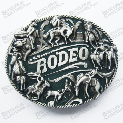 BOUCLE DE CEINTURE RODÉO RIDING SUR FOND ARGENT LUSTRÉ